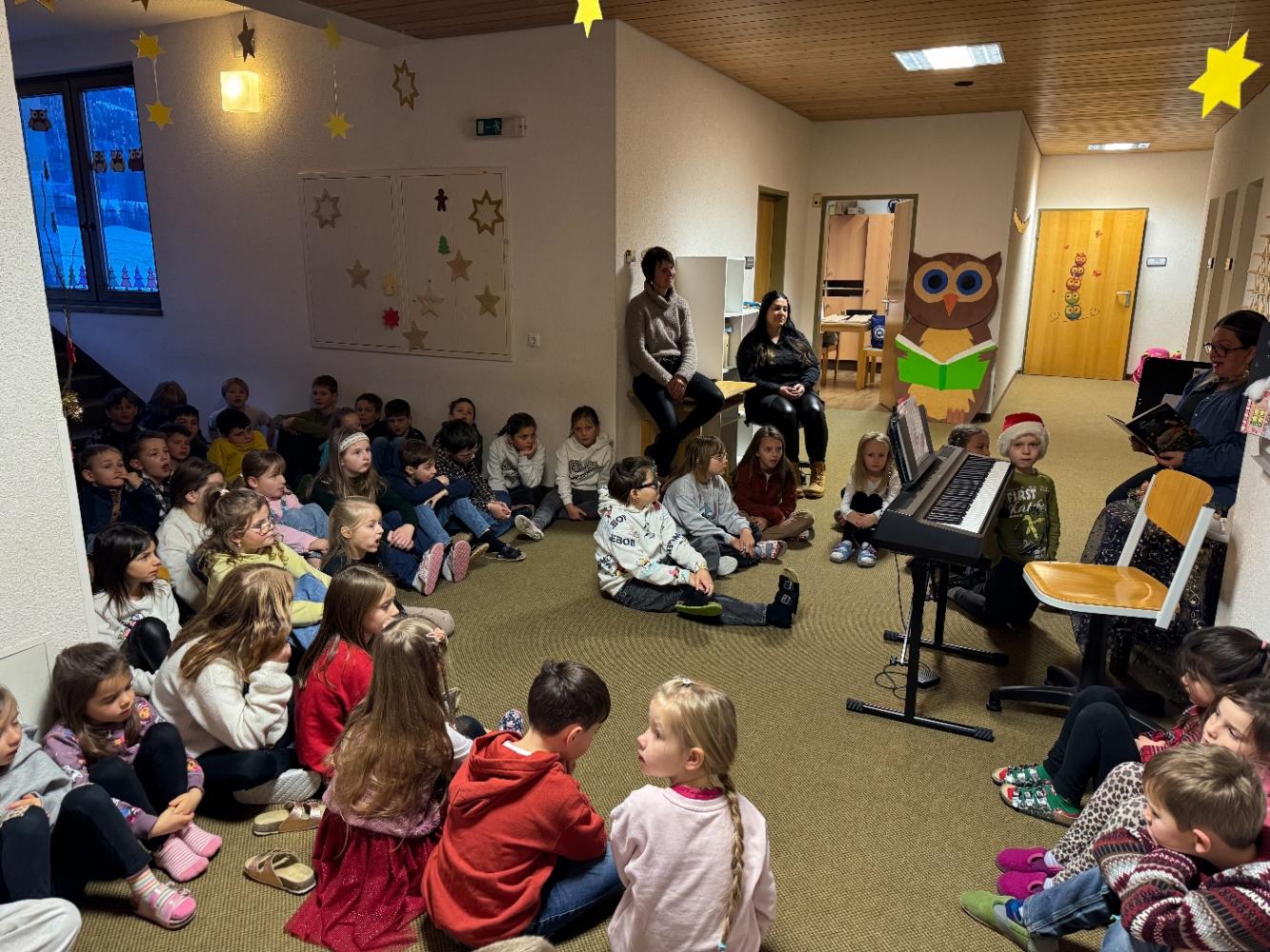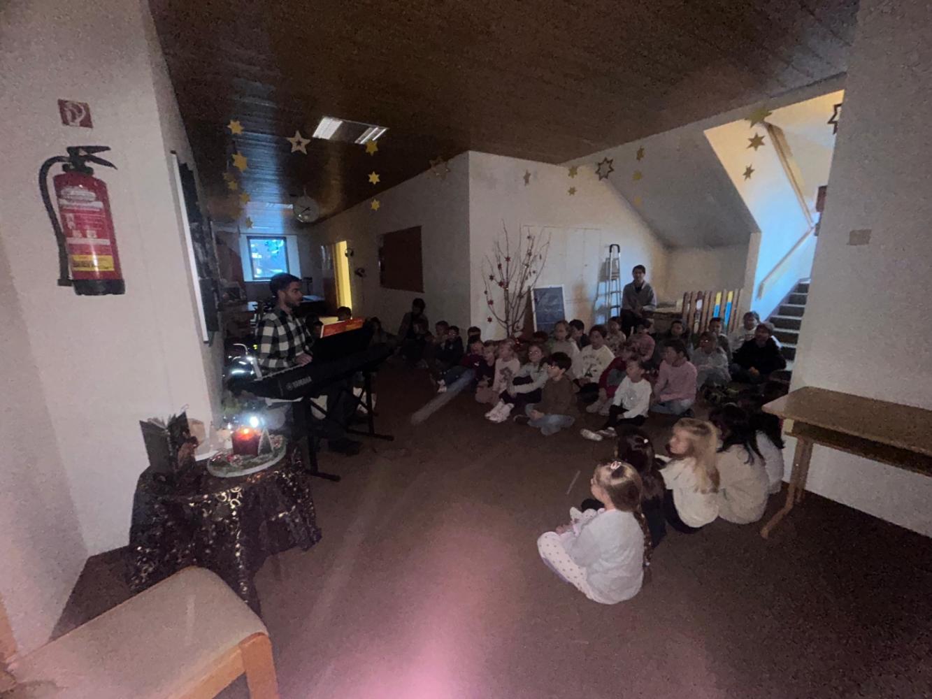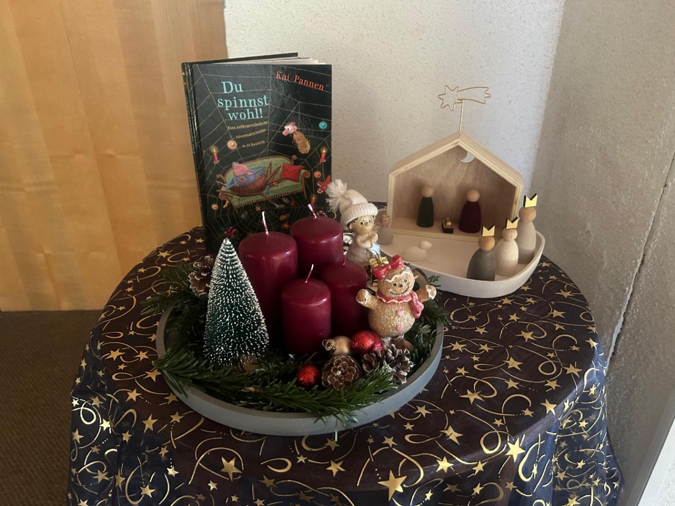In der Adventzeit trafen sich jeden Morgen alle drei Klassen zu einem besonderen Ritual. Rund um den stimmungsvoll geschmückten Adventkranz wurde gemeinsam ein Lied gesungen, bevor sich alle gespannt den täglichen Kapiteln aus dem Buch „Du spinnst wohl!“ von Kai Pannen widmeten.