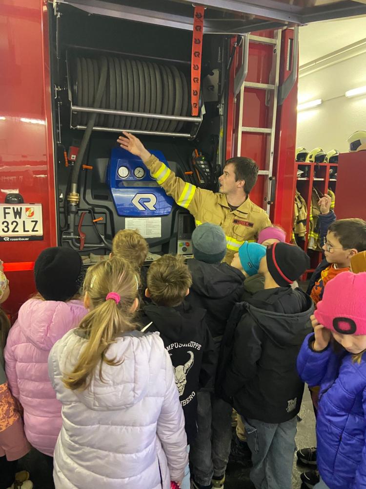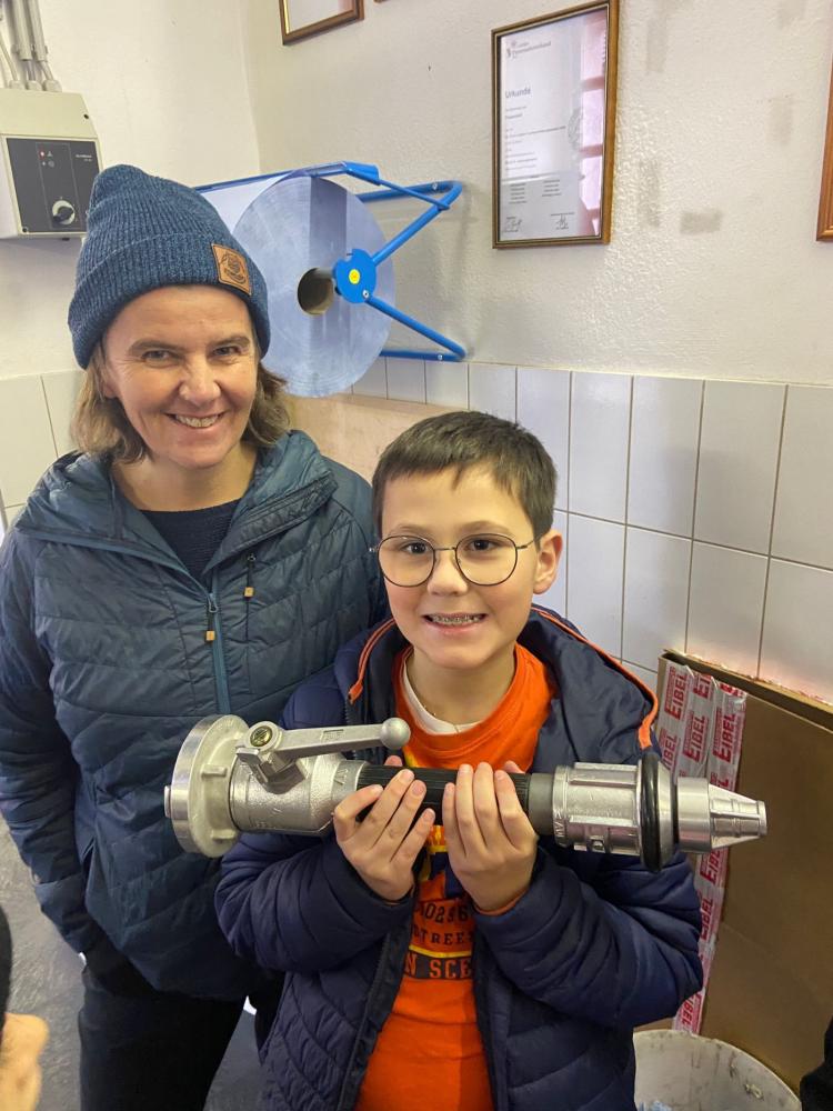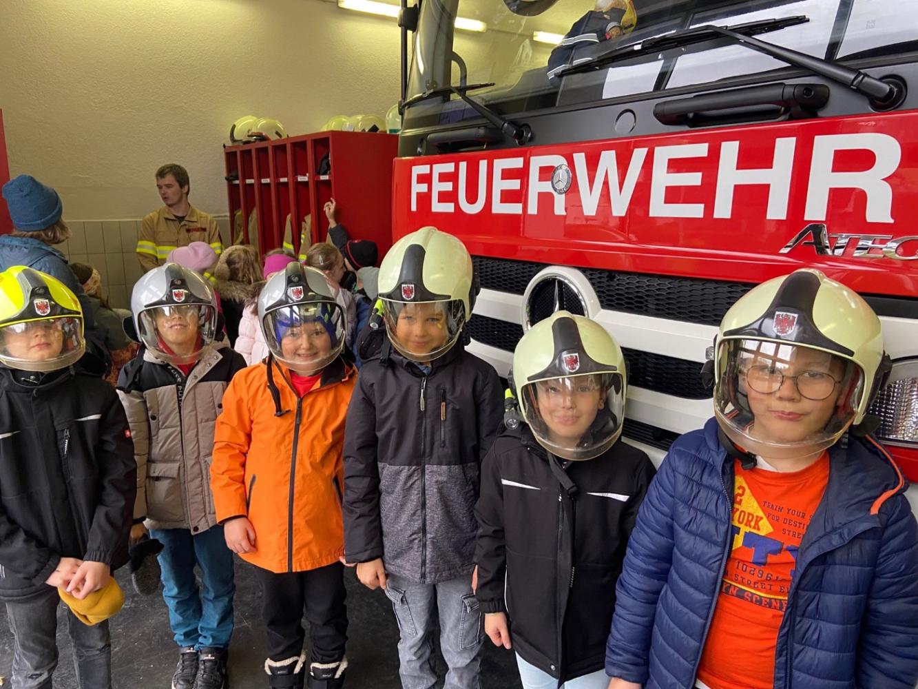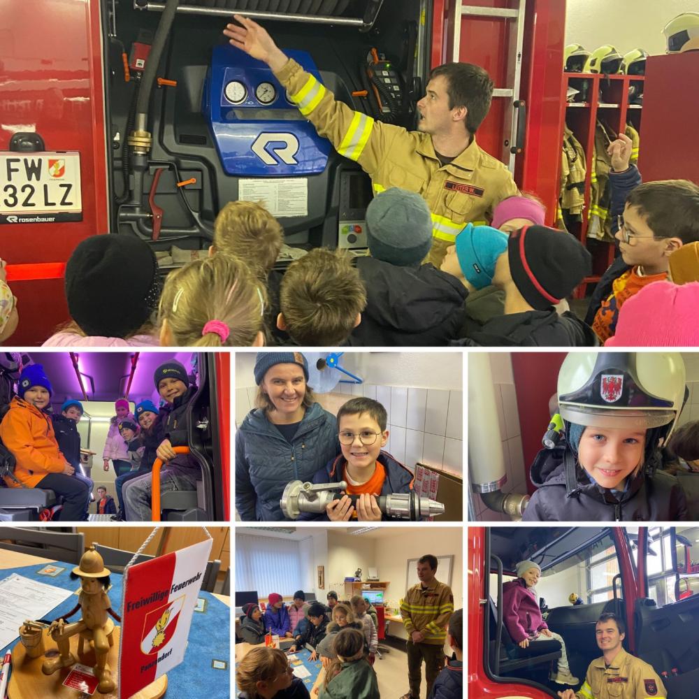 Gestern waren wir bei der Feuerwehr. Da haben wir viele tolle Sachen gesehen. Das war einfach so toll! Da waren Bolzenschneider, Äxte, Schläuche, Spritzpistolen und Pumpen oder auch Hütchen.