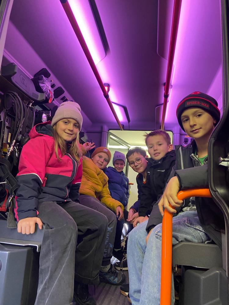Danach durften wir noch in das TLFA sitzen. Dann haben wir noch auf den Vordersitz des TLFA sitzen dürfen. Das war das tollste! Dann haben wir noch einen Helm aufsetzen dürfen und die ungefähr 25kg schweren Flaschen getragen. Das war einfach so toll!