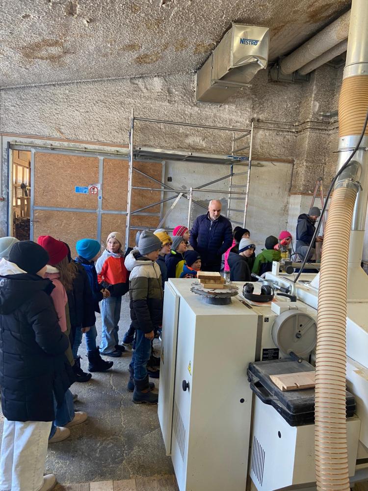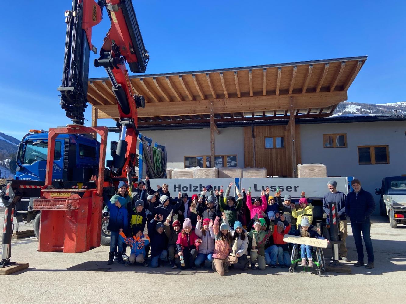Am 18. Februar 2026 durften die Kinder unserer Schule eine spannende Betriebsbesichtigung bei der Firma Holzbau Lusser erleben. Mit großer Begeisterung lernten die Schülerinnen und Schüler die vielfältigen Aufgaben eines Zimmermanns kennen. Vom Planen über das präzise Zuschneiden bis hin zur Verarbeitung des Holzes erhielten die Kinder einen eindrucksvollen Einblick in dieses traditionsreiche Handwerk. Besonders aufregend war es, verschiedene Arbeitsschritte aus nächster Nähe mitzuerleben.